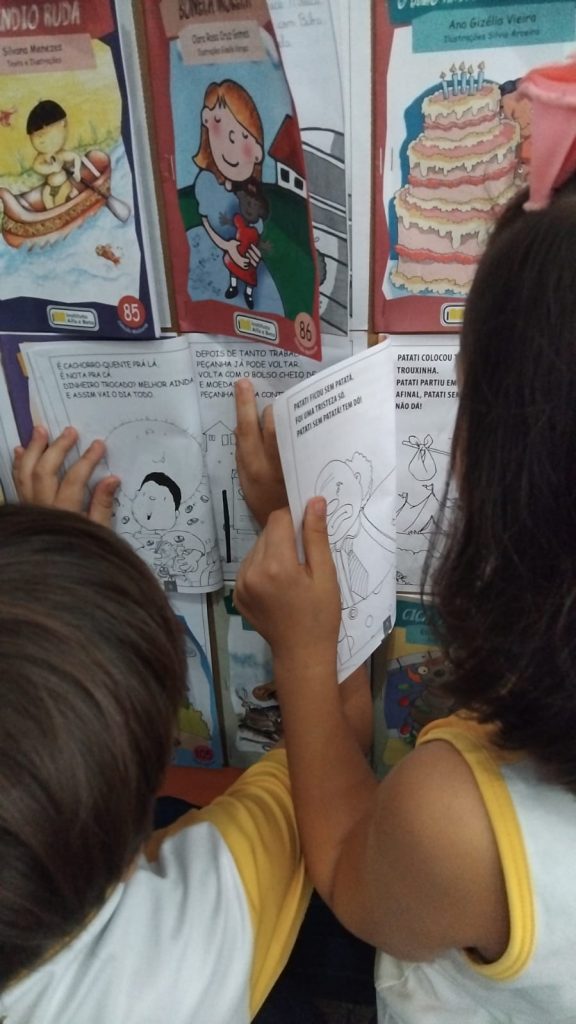 Gosto muito de criar, ver o que tenho relacionado ao material, analisar a necessidade da turma e entender como posso chegar a eles de uma forma prazerosa, fazendo que leiam com alegria de uma forma prazerosa e gostarem de ler. E tendo os minilivros em mãos, pensei numa forma de que os alunos pudessem lê-los não somente eu entregando a eles nas mãos, mas por decisão deles, que pudessem ir ao encontro dos minilivros sem nenhuma obrigação, de uma forma espontânea. Fazer com que pudessem chegar na sala e ir ao encontro dos minilivros, terminar uma atividade e ir lê-los. E assim nasceu a ideia de criar a Biblioteca dos Minilivros, onde através do gostar de ler, os alunos pudessem ir ao encontro deles. Fazendo assim com que possam alcançar a fluência em leitura.