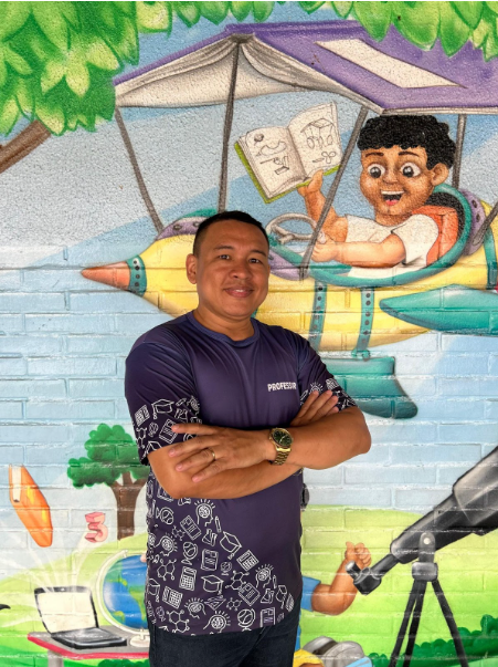 A história do professor Reginaldo é um conto de vocação. Nascido em 1982, teve os livros inseridos em sua rotina desde a infância, seguindo o chamado para a docência, que se concretizou após constituir família, tornando-se pai de quatro. Hoje, com 17 anos de dedicação, sendo 13 deles como professor alfabetizador na Escola Municipal Maria Yêdda Frota, colhe os frutos de seu sonho, tendo a honra de ter sido o educador que abriu as portas do mundo da alfabetização para a própria filha.
